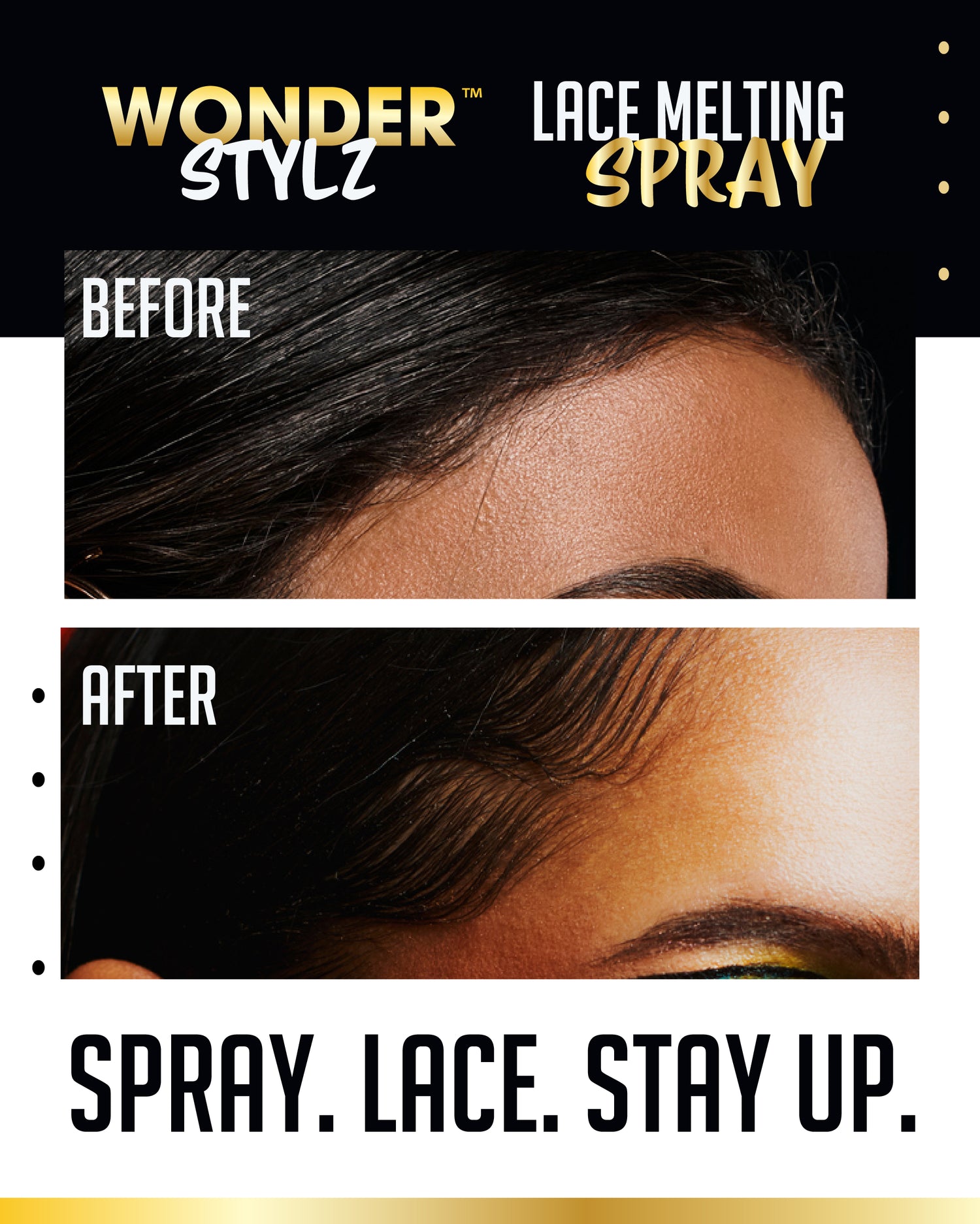 Elevate your look, protect your hair, and embrace the ultimate in lace wig perfection. Try Wonder Stylz™ Lace Melting Spray today and watch your lace melt seamlessly!